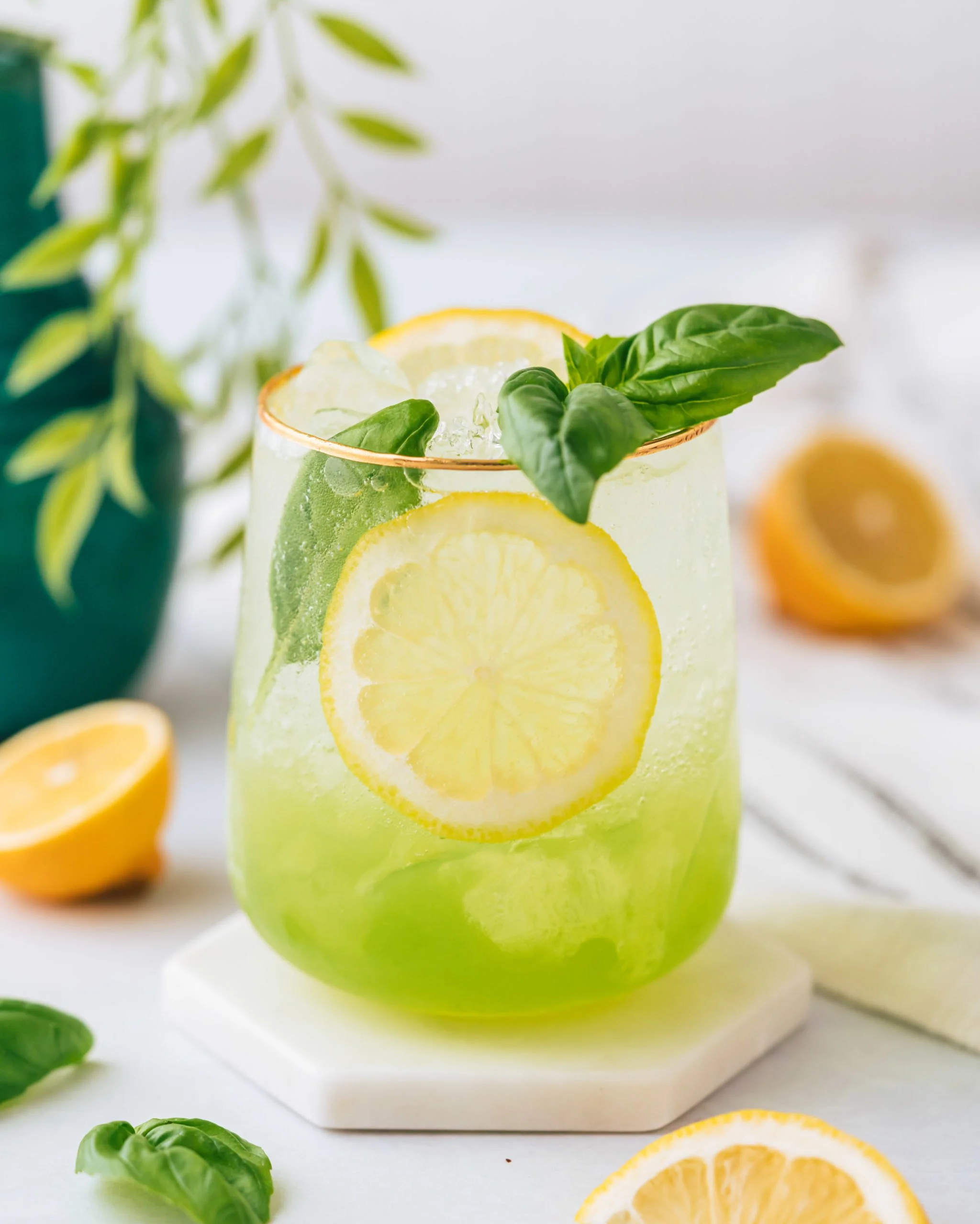 Garnish: lemon wheel and basil leaf