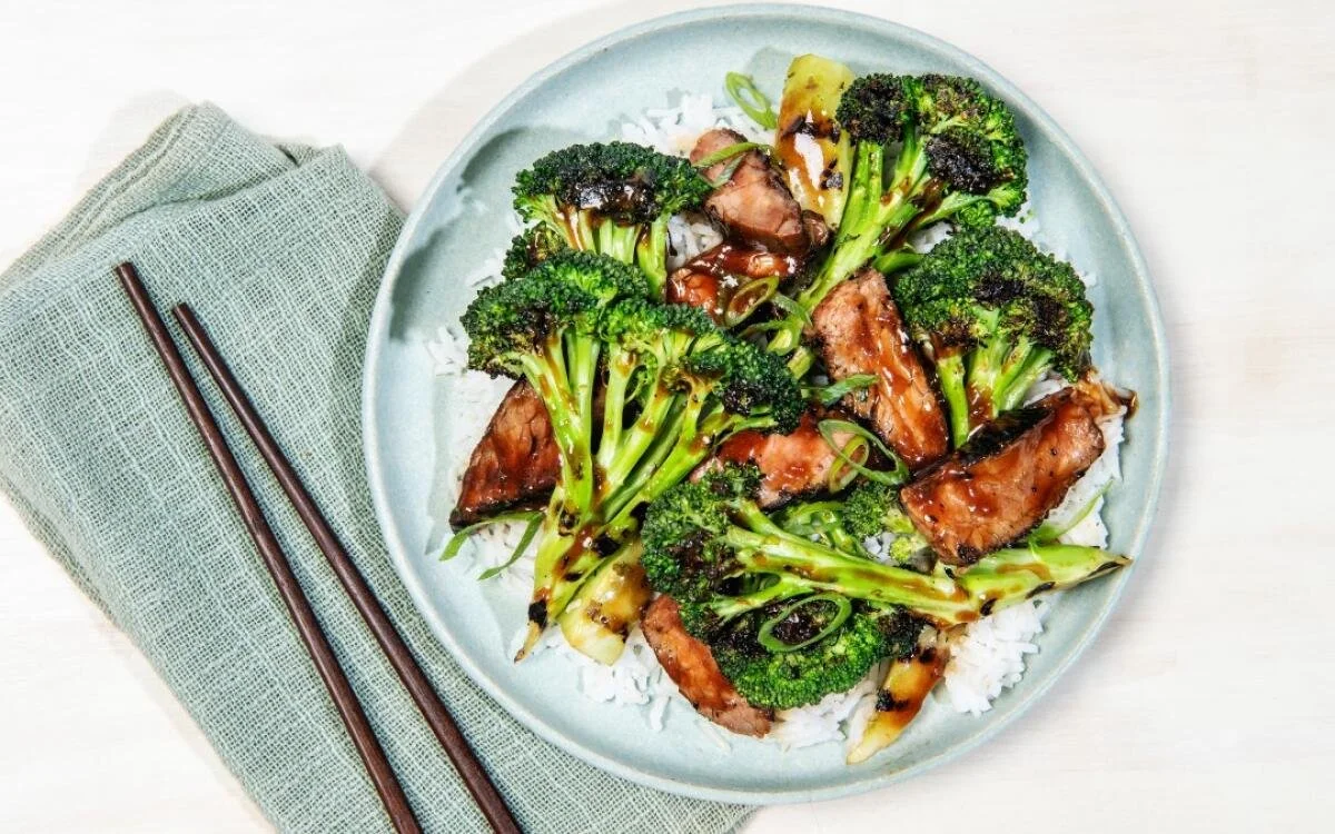 Transfer the broccoli and steak to a rimmed baking sheet and drizzle the boiled marinade all over. Let the steak rest for 5 minutes, then cut with the grain into thirds. Cut each section into thin slices across the grain and toss with the broccoli and sauce. Serve hot.
