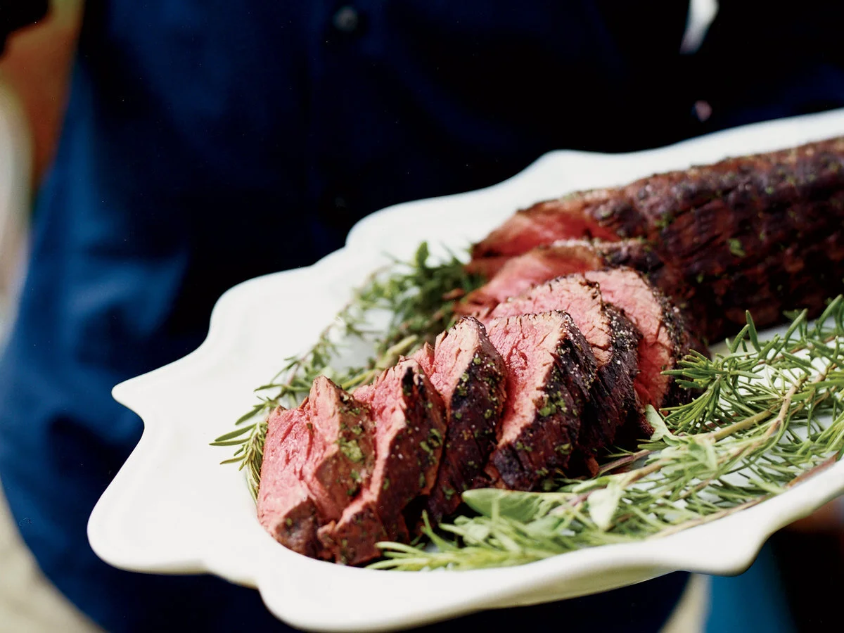 Light a grill. Grill the roast directly over moderately high heat, turning often, until nicely charred, about 30 minutes for medium-rare. Transfer to a carving board and let rest for 10 minutes. Slice the roast 1/2 inch thick and serve.