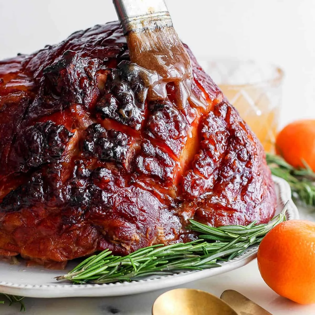When there is approx. 10-20 minutes of cook time left, open the grill lid and remove the foil. Brush the entire ham liberally with the glaze, ensuring you get in every nook and cranny. Close the lid and increase the grill temperature to 400-425 degrees F. The glaze should get a little tacky and start to caramelize.