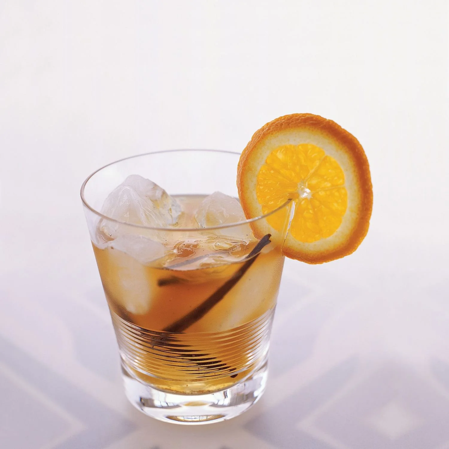 In a rocks glass, muddle the vanilla bean and orange zest with the Simple Syrup and bitters. Add the bourbon and ice, stir and garnish with the orange wheel.